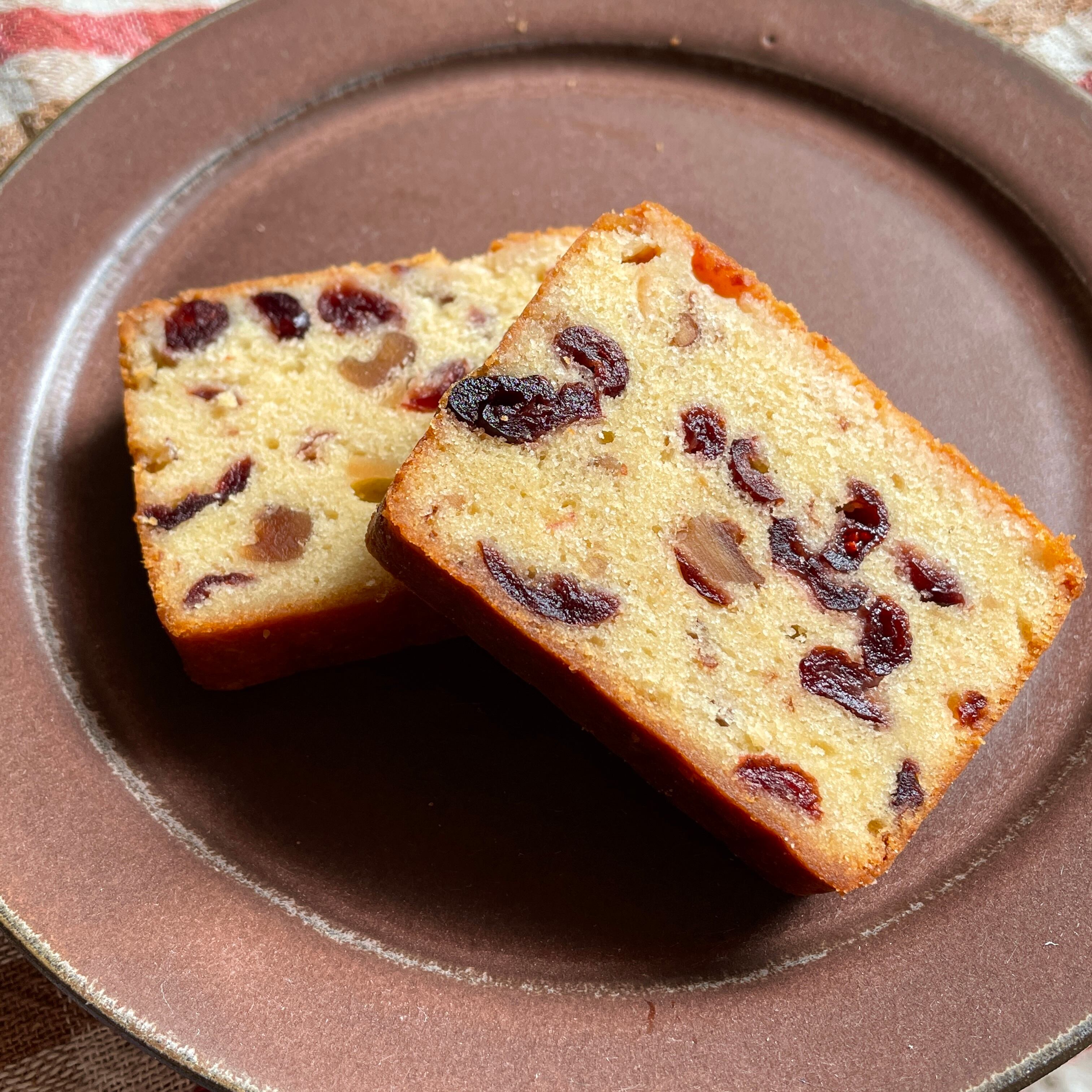 甘酸っぱいクランベリーと相性の良いクルミを刻んで入れたパウンドケーキです。